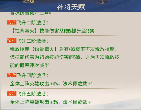 - 追魂蚀火(飞升技):绝技释放后有40%概率再次释放,伤害减半,是输出上限的核心提升,能瞬间打出高额爆发。
