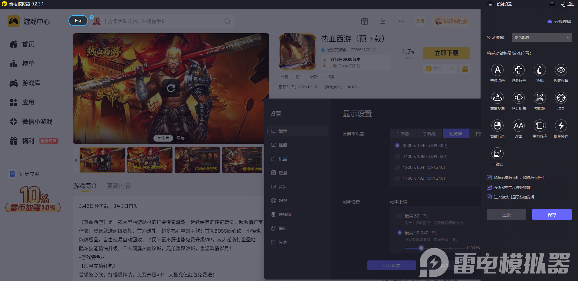 不过长期用手机玩热血西游传奇,难免会遇到屏幕太小看不清技能范围、操作不精准的问题,雷电模拟器就是专为手游玩家打造的适配工具,能完美适配热血西游传奇,带来更流畅的游玩体验。