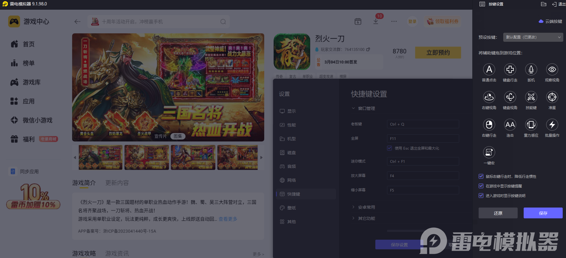 升级过程中需要频繁点任务、刷副本、放技能,手机操作时手指频繁点击屏幕,不仅容易误触,长时间操作还会觉得疲惫,打乱升级的节奏。雷电模拟器可以自定义按键设置,将常用的任务键、技能键合理布局,点击精准不失误,全程流畅完成操作,让升级的每一步都更顺手,冲级节奏始终连贯。