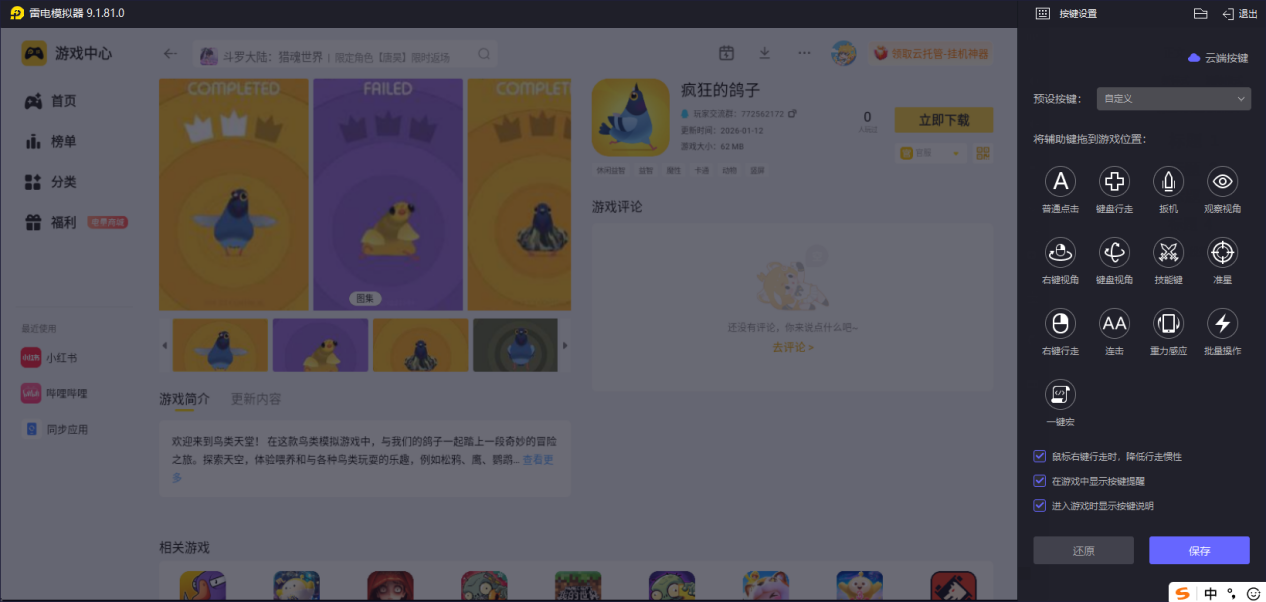 雷电模拟器——疯狂的鸽子电脑版的好帮手
