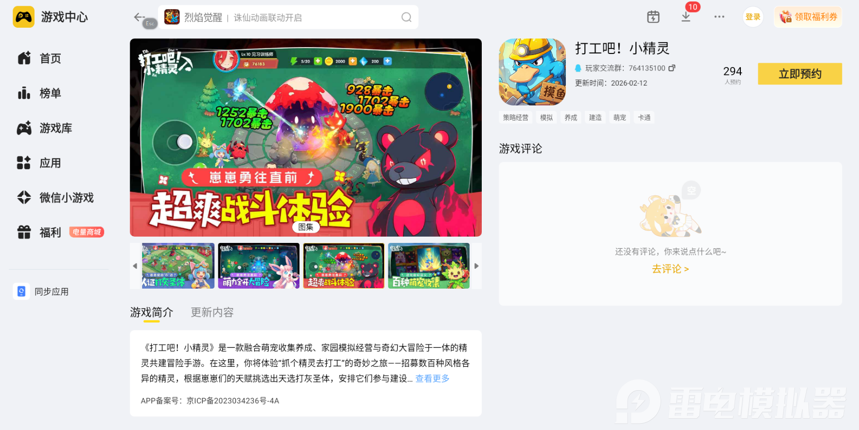 结合这款游戏的玩法特点,最适合大家使用的就是雷电模拟器。它能完美贴合精灵打工、家园经营的核心需求,不管是同时调度多只精灵打工,还是欣赏游戏里的萌系场景,都能带来更舒适的体验,是玩《打工吧小精灵》的理想选择,能让我们更轻松地享受养成与经营的乐趣。