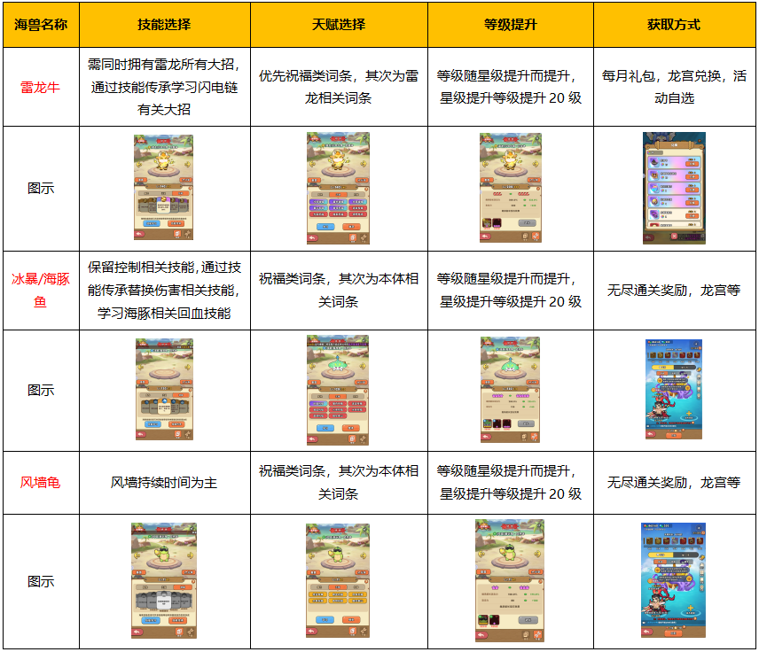 海兽的培养是为了后续神兽的出场奠定基础,海兽的等级决定神兽等级,二者相互绑定,所以海兽的培养只有两大重点,分别是等级和天赋以及技能的选择。