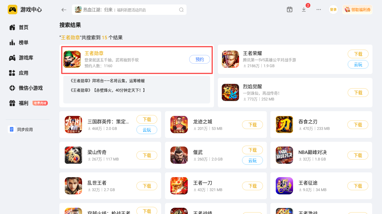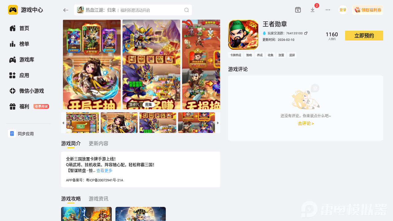 首先在电脑浏览器输入雷电模拟器,找到官方正规渠道进行下载,安装完成以后启动雷电模拟器,在首页的雷电游戏中心输入王者勋章点击搜索按钮,然后点击游戏图标完成预约即可。