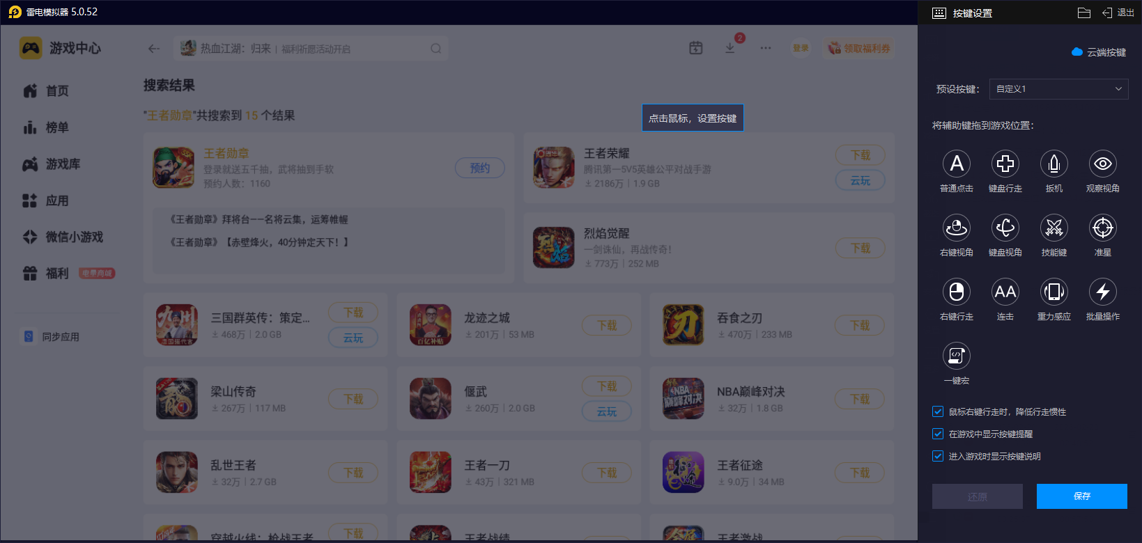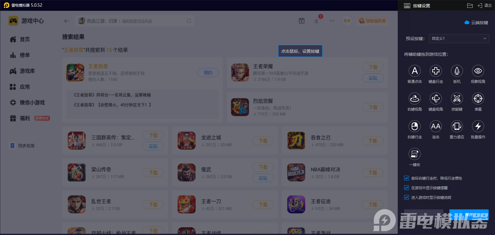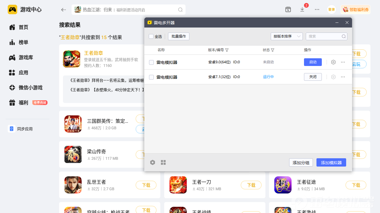 雷电模拟器运行王者勋章游戏优势