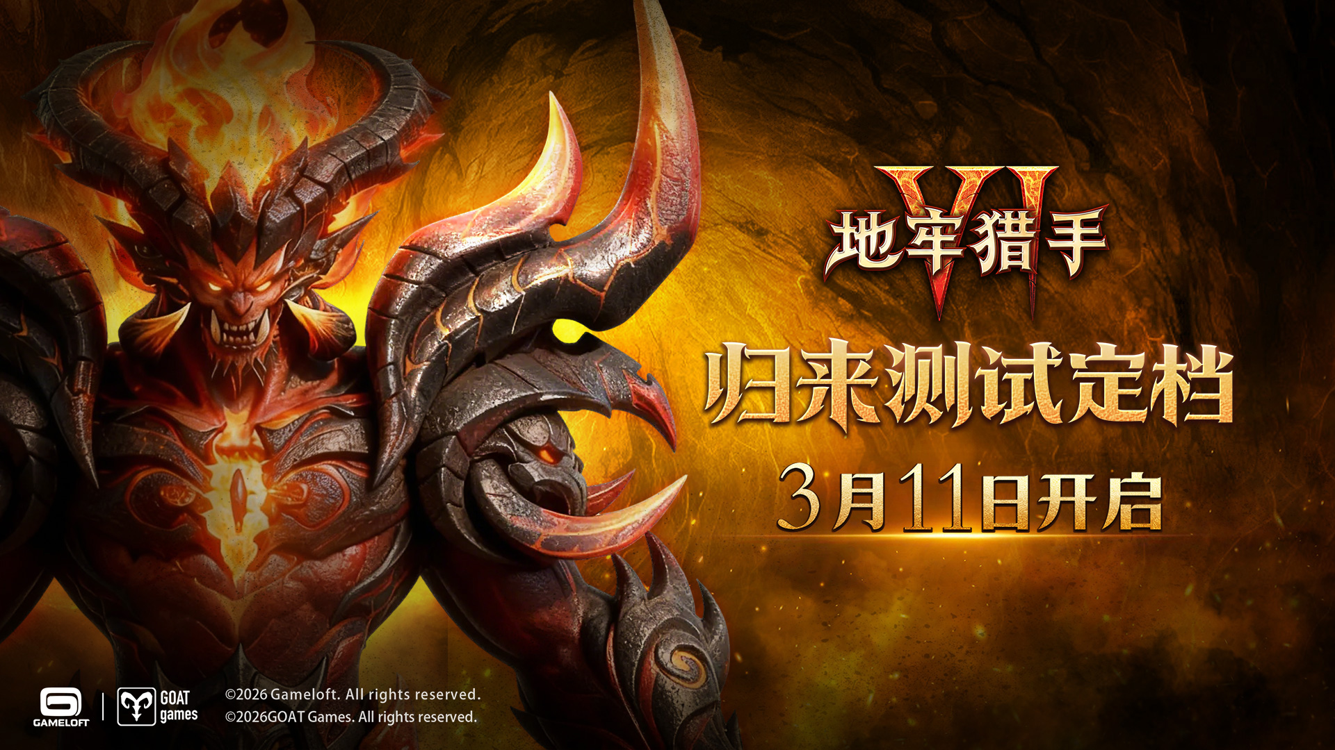 感谢所有赏金猎人对《地牢猎手6》的持续关注与期待。经过漫长准备,Gameloft全球唯一正版授权续作《地牢猎手6》,今日正式宣布【归来测试】将于2026年3月11日10:00正式开启!