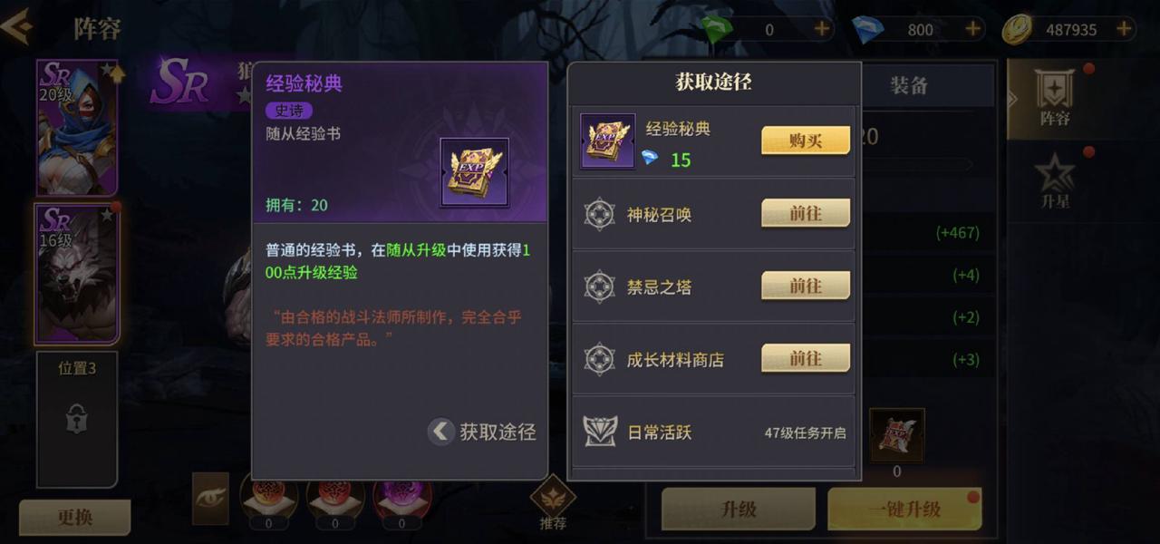 经验秘典:通过神秘召唤,禁忌之塔,成长材料商店获取,优先强化阵容随从