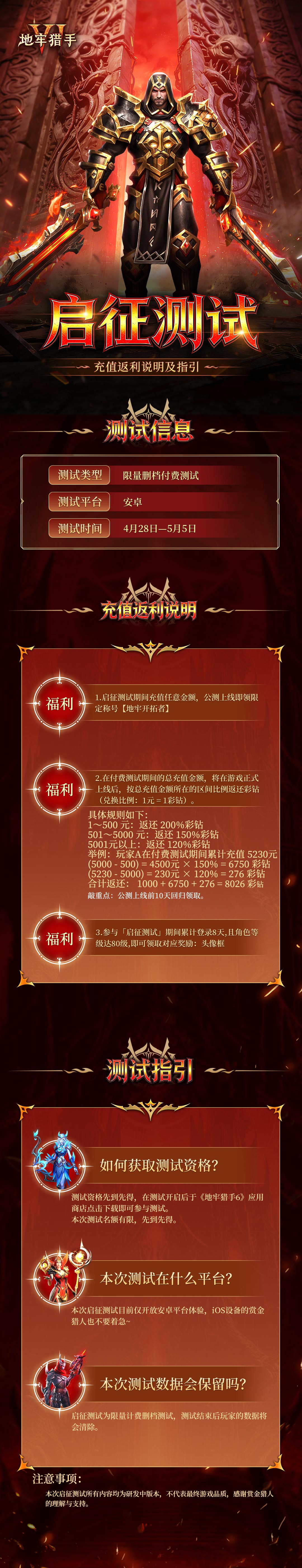 《地牢猎手6》「启征测试」充值返利规则说明