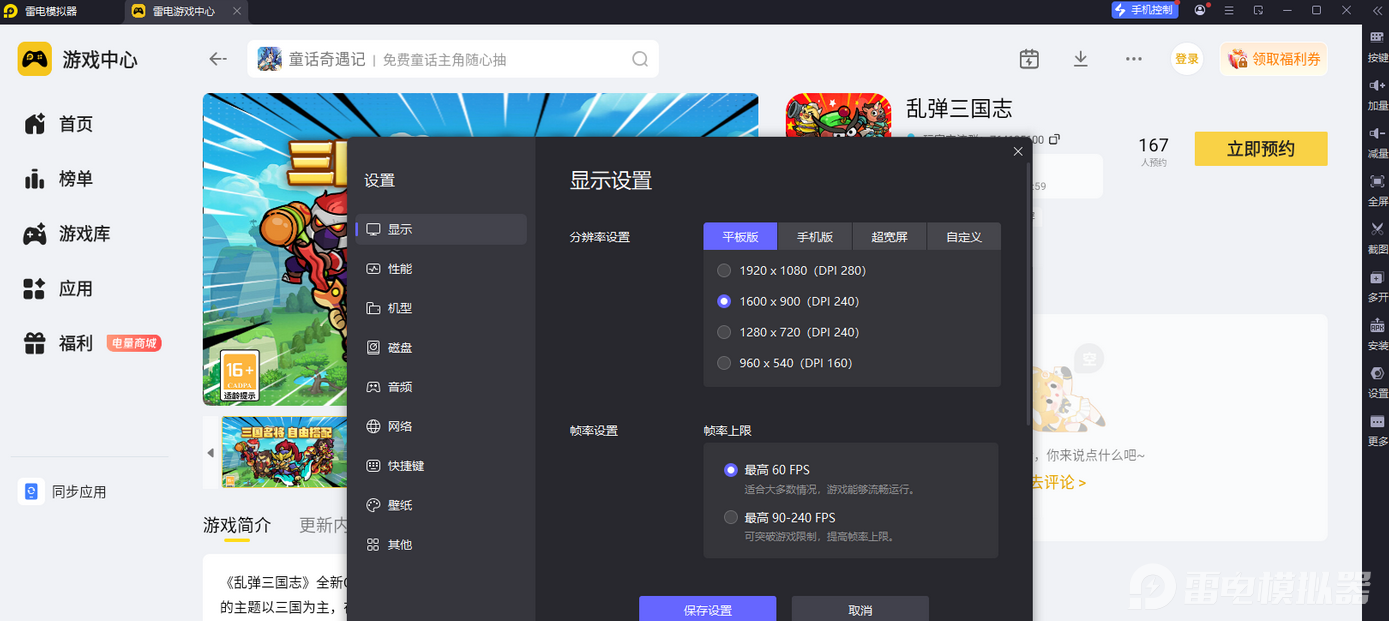 1、升级视觉体验,还原游戏画质与特效细节该游戏当中的武将画风相当的精致且Q萌可爱,还有极为炫酷的技能特效以及城池攻防的宏大场景。通过雷电模拟器的4K高清画质以及165赫兹刷新率能将这些细节呈现的更加完美。4K高清画质,将武将皮肤呈现的栩栩如生,165赫兹刷新率,则能确保部队冲锋画面不拖影。