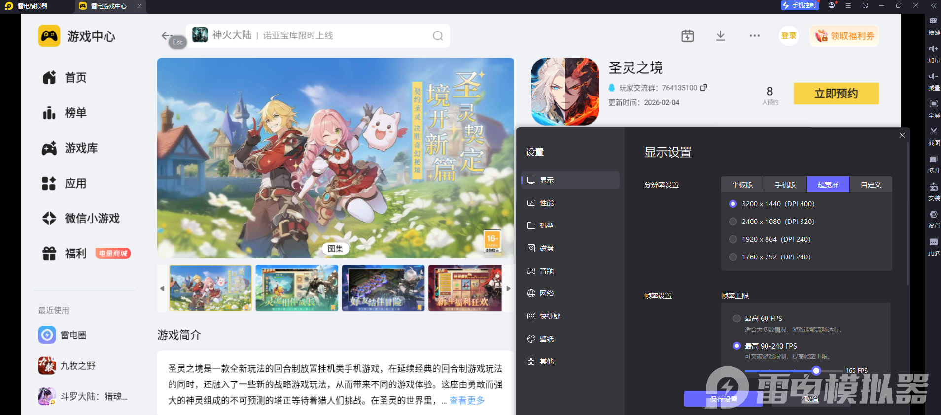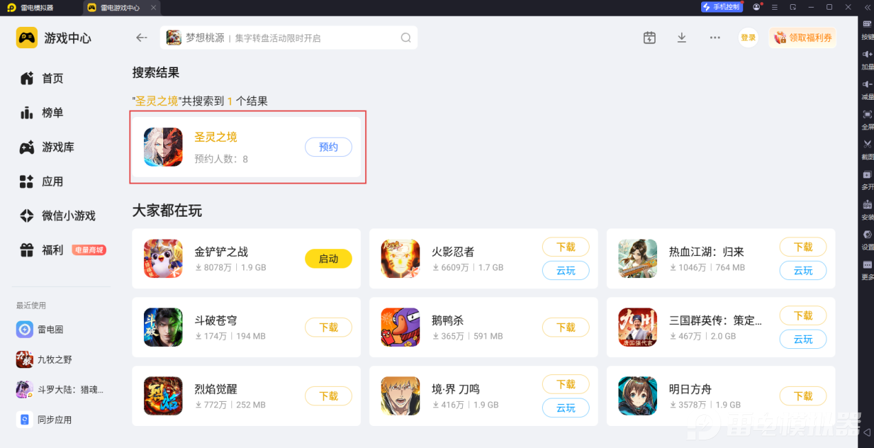 想要安稳畅玩《圣灵之境》,第一步就是选对模拟器并做好准备,小编给大家推荐的就是非常靠谱的雷电模拟器。大家直接打开浏览器,进入雷电模拟器的官方网站,下载安装完成后打开模拟器,在内置的雷电游戏中心里搜索《圣灵之境》,就能直接完成预约。