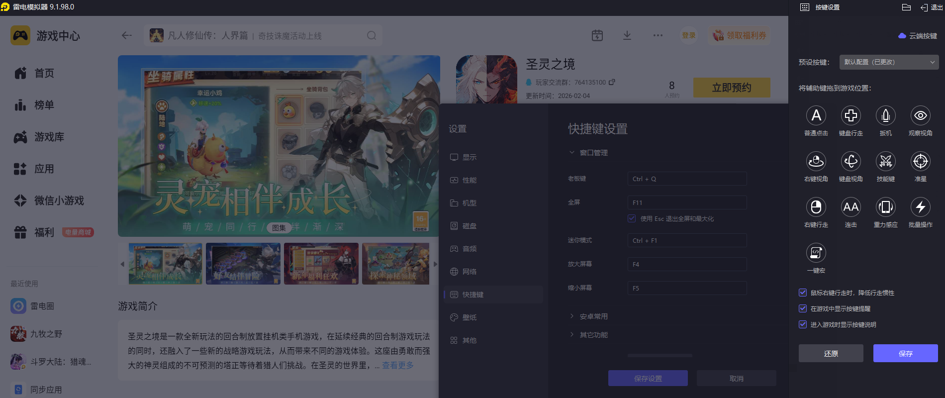 《圣灵之境》是回合制策略玩法,需要频繁进行技能搭配、阵容调整,还有地图探索、任务交互、挂机设置等各类操作,手机触屏操作容易出现误触,连续进行策略操作时也不够灵活。雷电模拟器支持自定义键盘鼠标按键,我们可以把技能释放、移动、确认等常用操作,设为自己顺手的键位,战斗时策略搭配更精准,日常探索和任务操作也更轻松,完美适配游戏的各类玩法需求。