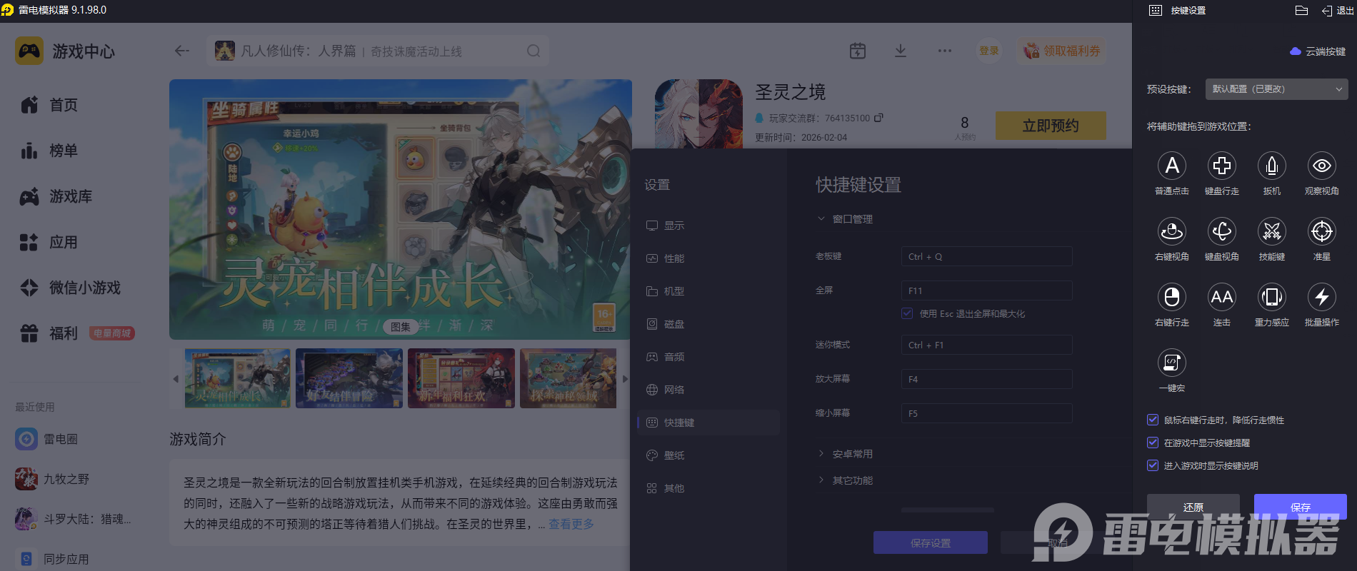 《圣灵之境》是回合制玩法,需要灵活搭配技能、调整阵容,手机触屏操作容易按错按键,影响战斗策略的执行,打乱游戏节奏。雷电模拟器支持键鼠自定义按键,按键响应更及时,选技能、调阵容、点目标都更精准,不管是日常副本还是高阶挑战,都能稳稳完成操作,让回合战斗的策略体验更顺畅。