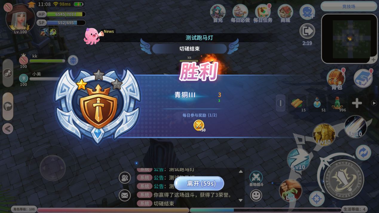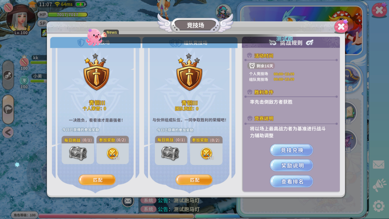 竞技场规则:玩家等级≥25 级,即可通过右侧菜单进入竞技场,单场战斗时间不超过 3 分钟,超时则判定为平局。获胜方直接获得荣誉值;若组队 PK 获胜,除个人荣誉外,队友也能额外获得团队贡献,仅允许在战斗地图内进行 PK,离开地图则战斗终止。