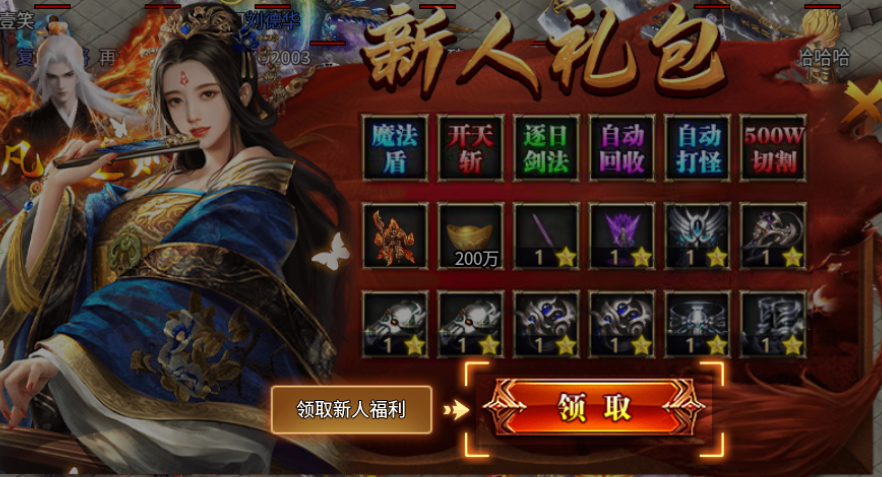 ★.登录就送新人礼包:经典时装、自动回收、自动打怪、500W切割