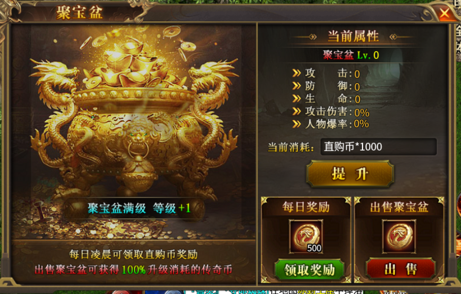 需要把聚宝盆升到100级,每日赠送大量直购币,每天需要领取一次,请勿忘记领取。