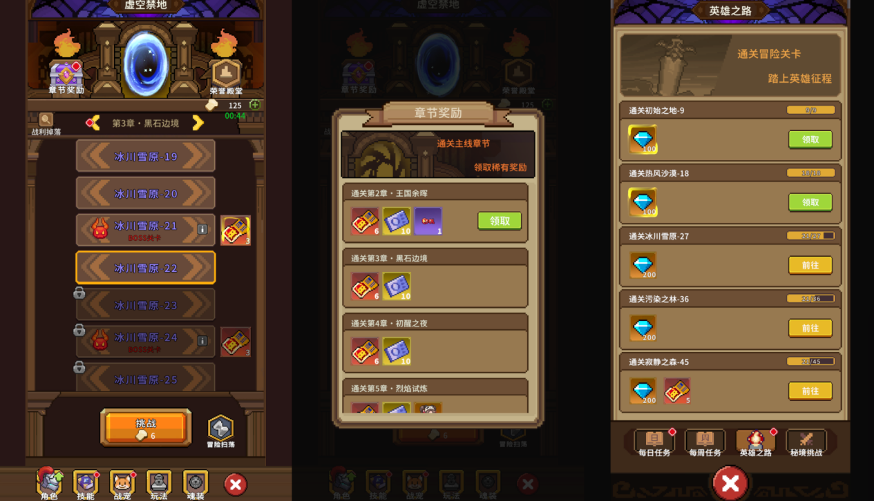 随着冒险进度推进,勇者们每通关一个章节都能获得璀璨符文抽奖券×15的奖励!不仅如此,通关冒险关卡还能在「英雄之路」中额外获得总计水晶×5600、璀璨符文抽奖券×125的奖励。