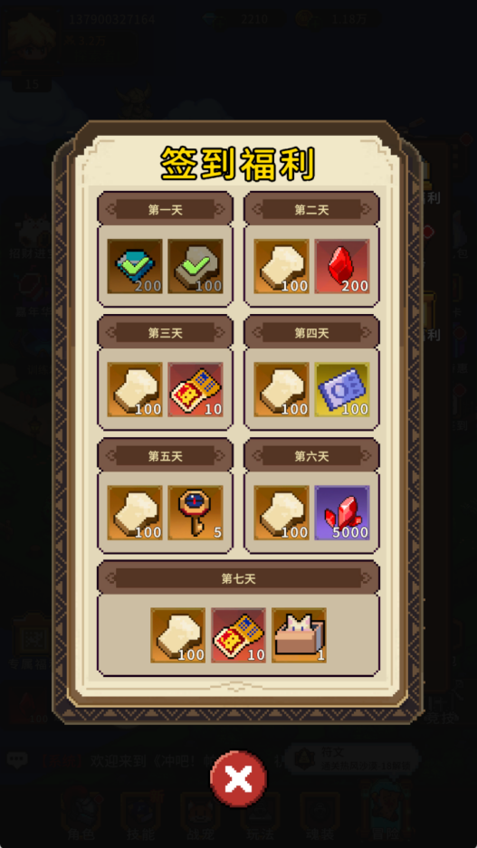 每周累计登录7天,都可获得体力、璀璨符文抽奖券、传奇宠物自选箱等珍贵道具!