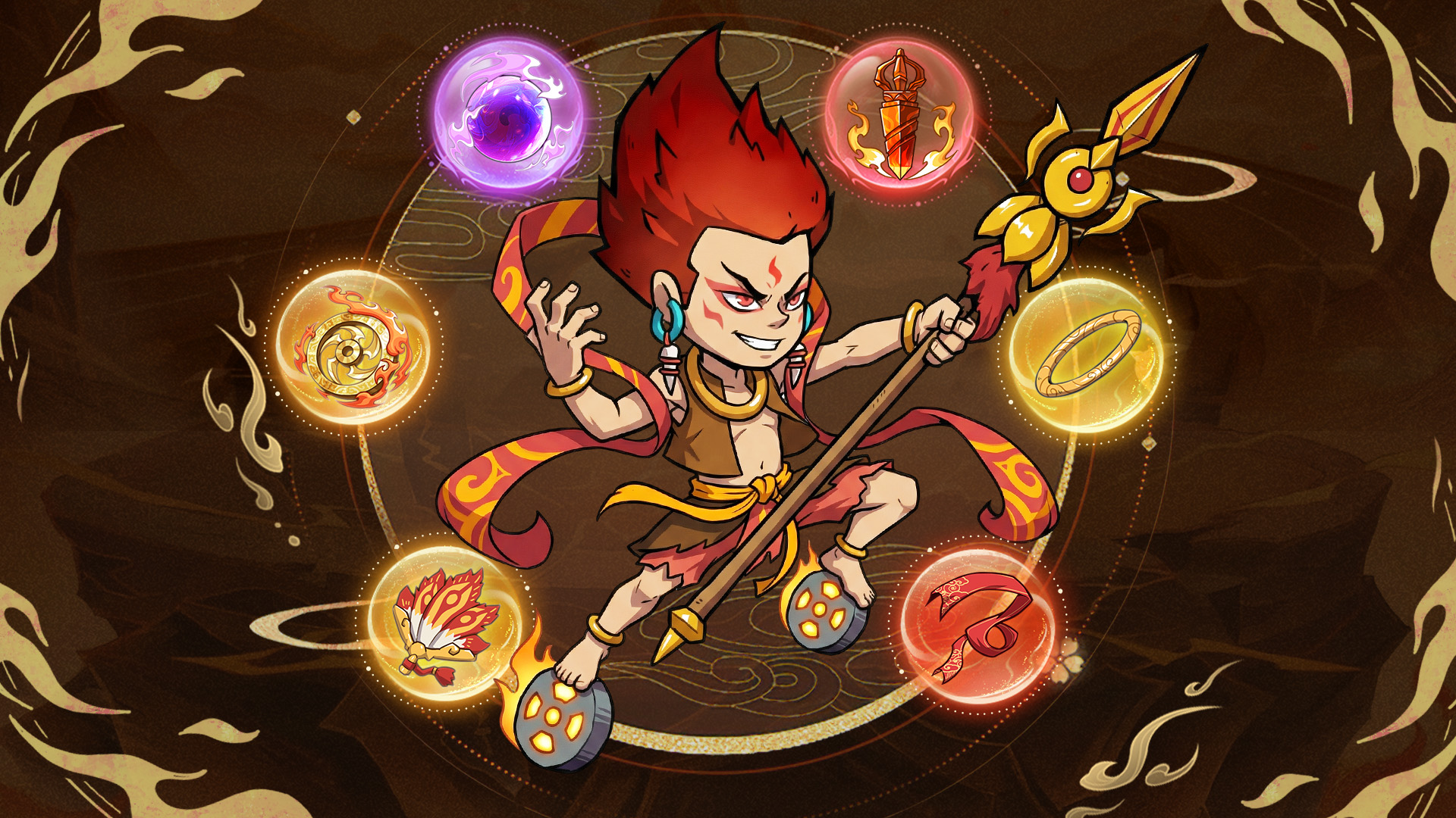 三头八臂装备:法身状态下,哪吒手持八件兵器,除双杆火尖枪外,还包括金砖(群攻投掷)、九龙神火罩(火系至宝)、阴阳双剑。