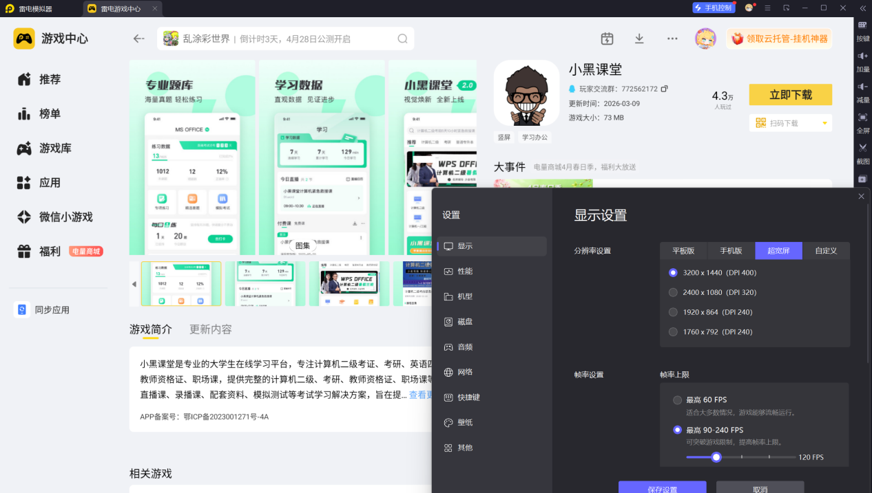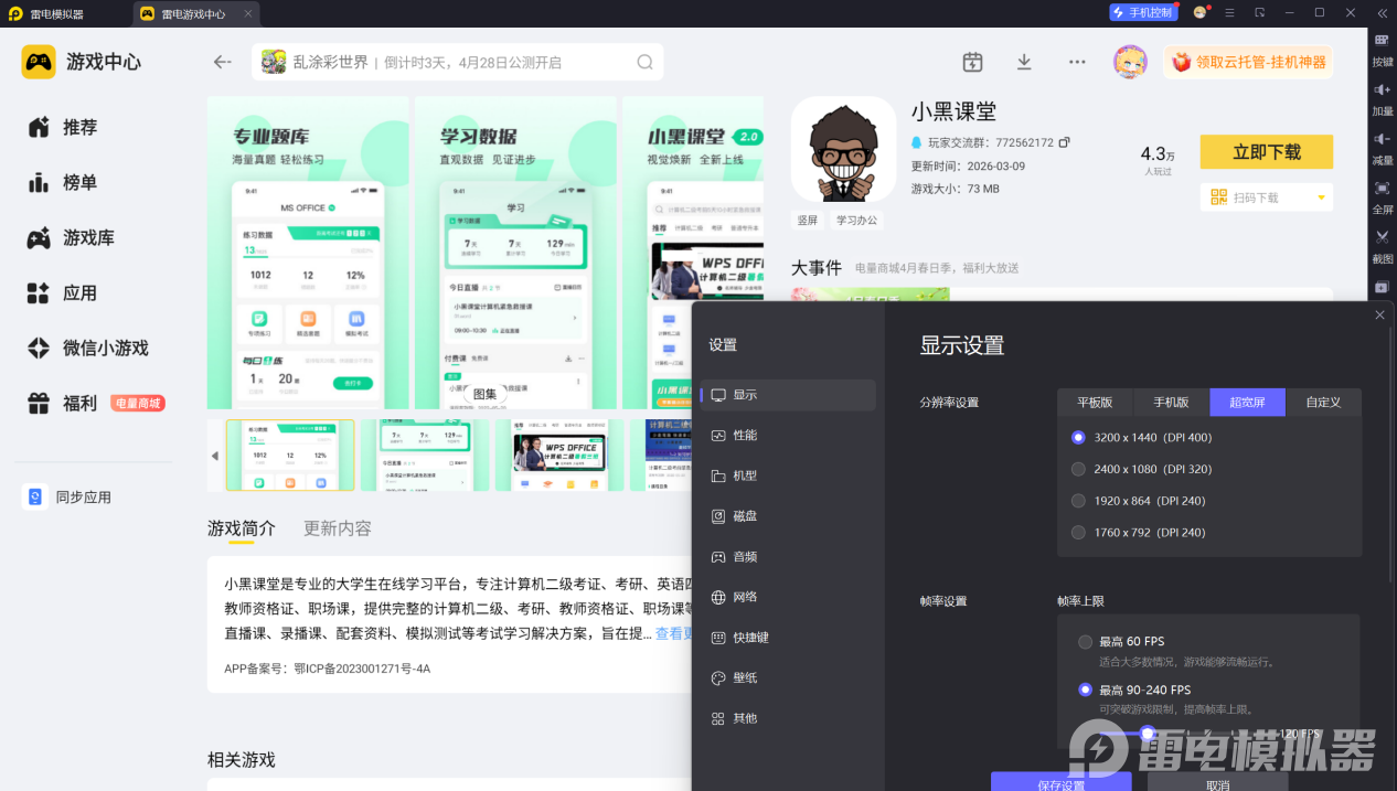 电脑大屏带来的视觉提升非常明显。刷题时,题目和选项一目了然,无需频繁滑动页面;观看教学视频时,弹幕和课件可以同屏显示,做笔记更方便。雷电模拟器支持自定义分辨率,你可以根据显示器比例调整到最佳画质,让文字清晰不伤眼。