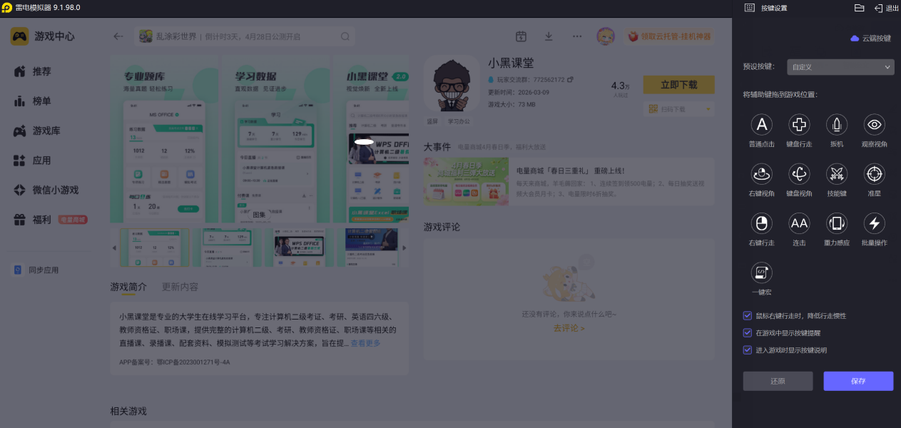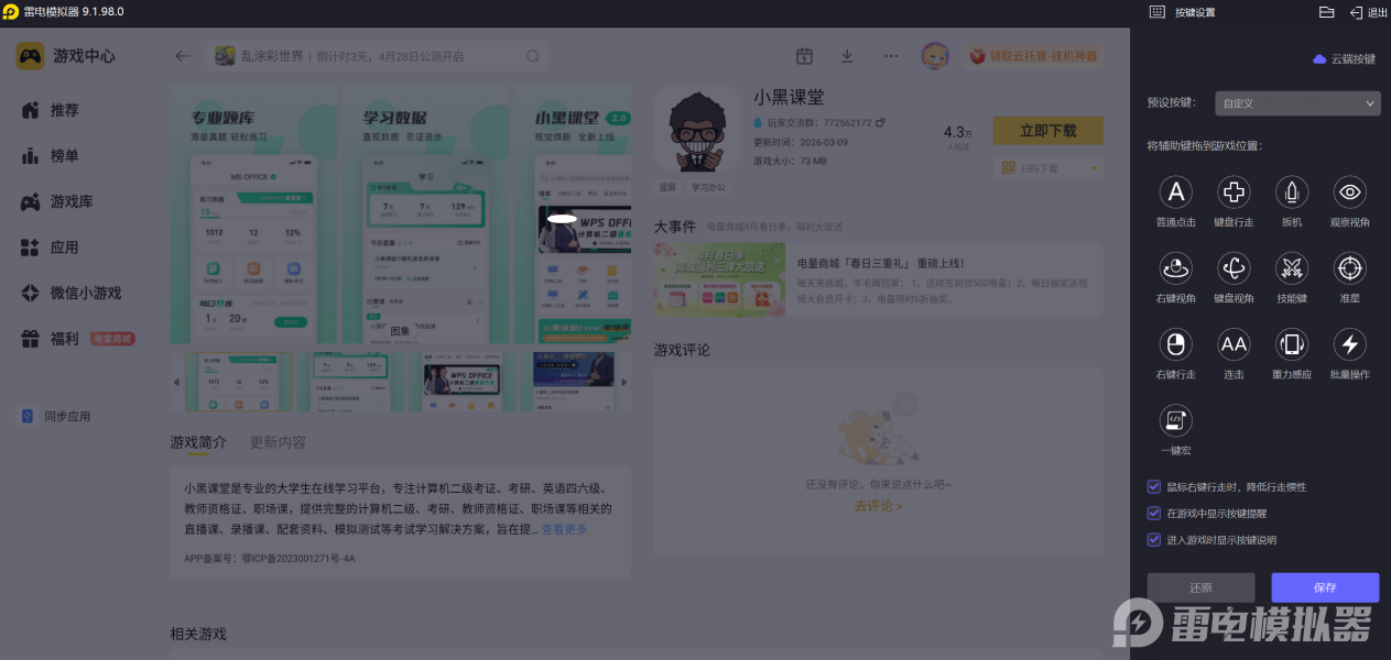 在电脑上使用小黑课堂电脑版,能彻底摆脱手机小屏的局限,让学习备考、刷题练习更加高效。很多用户不知道小黑课堂电脑版怎么下载,其实通过雷电模拟器就能轻松实现。小黑课堂电脑版怎么下载呢?本文将手把手教你安装步骤,让你快速用上大屏版的小黑课堂。
