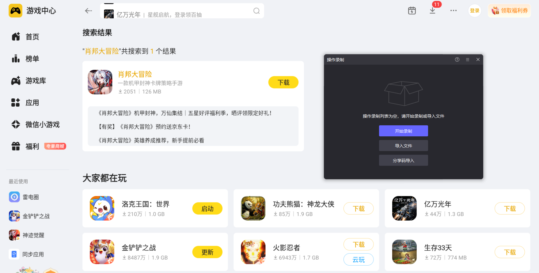 在优质画面的基础上,操作录制功能也能为游戏玩法带来极大便利。肖邦大冒险需要反复进行卡组搭配、出牌释放等操作,重复刷关时的操作流程较为繁琐,想要更高效地完成关卡挑战、留存优质出牌操作节奏,雷电模拟器的操作录制功能可以精准记录游戏操作步骤,后续自动复刻操作流程,让玩家更轻松地完成多轮闯关挑战。
