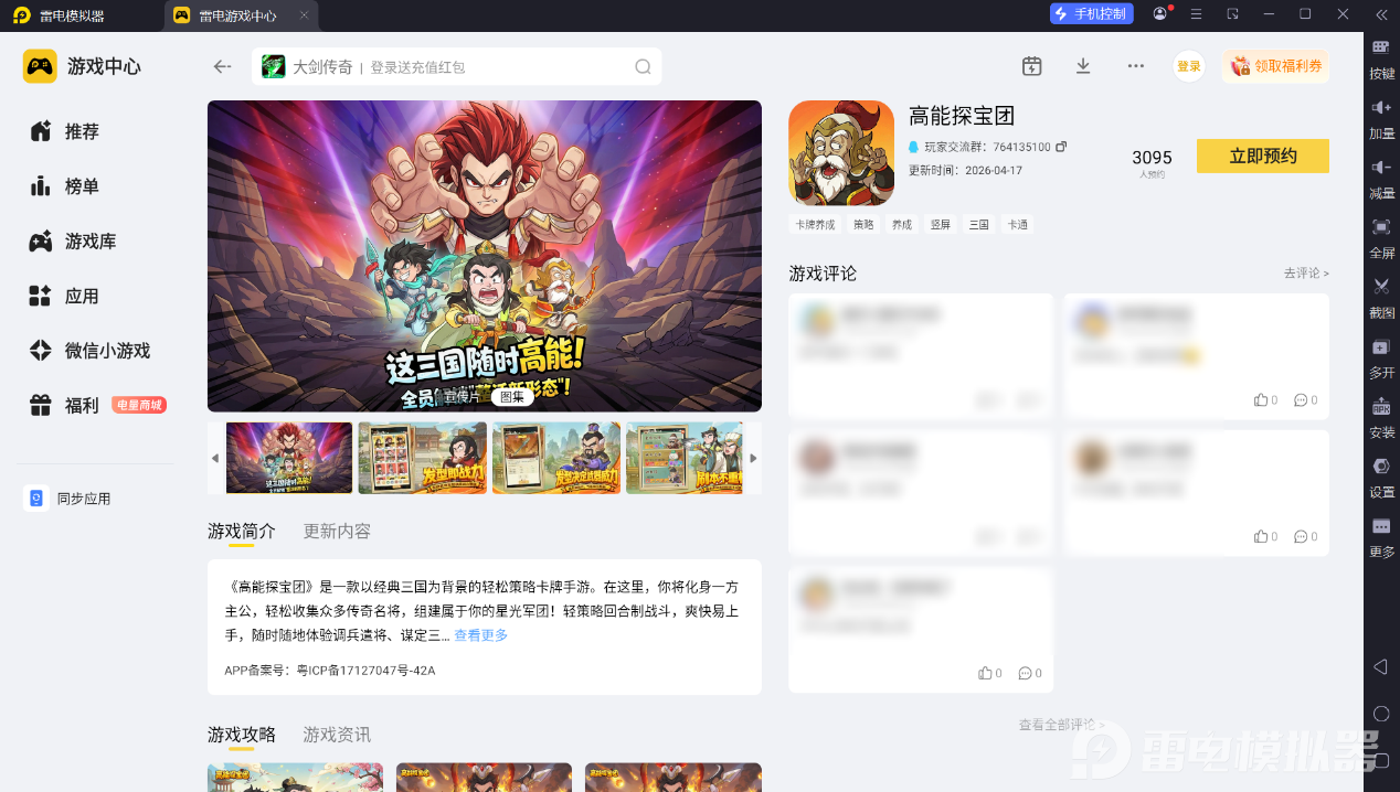 合理搭配开荒阵容,优化战法与宝石配置,再借助便捷的雷电模拟器操作体验,能让高能探宝团开荒的整体效率显著提升。前期聚焦核心武将培养,稳步完善养成体系,可轻松完成前期关卡挑战,稳定积累资源,为后续游戏内容解锁与战力提升筑牢基础。