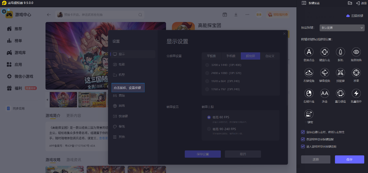 雷电模拟器超宽屏模式,能为高能探宝团开荒带来更优质的画面体验。超宽屏可完整呈现武将立绘的细节,让角色外观展示更全面。战斗场景中,超宽屏拓展视野范围,界面UI不会遮挡关键战斗信息,开荒时可清晰观察技能释放、武将状态与战场局势,便于及时调整操作,提升战斗判断的准确性。面对多武将同屏对战的复杂场景,超宽屏能让战场信息一览无余,减少因视野受限导致的操作失误。