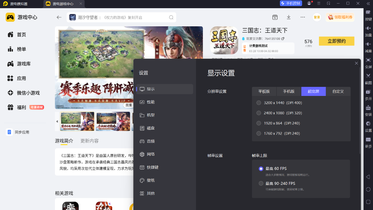 作为3D沙盘策略游戏,三国志王道天下的战局把控全靠视野,雷电模拟器的4K超宽屏模式能将这份优势拉满,可以完整呈现游戏的3D大地图全貌、古战场的地形等细节都能一览无余,不会被UI遮挡关键信息,不管是规划同盟攻城路线还是大地图探索寻访名士,都能看得更全面、判断更精准。同时搭配 165Hz 稳定刷新效果,游玩时画面体验也可以一直丝滑。