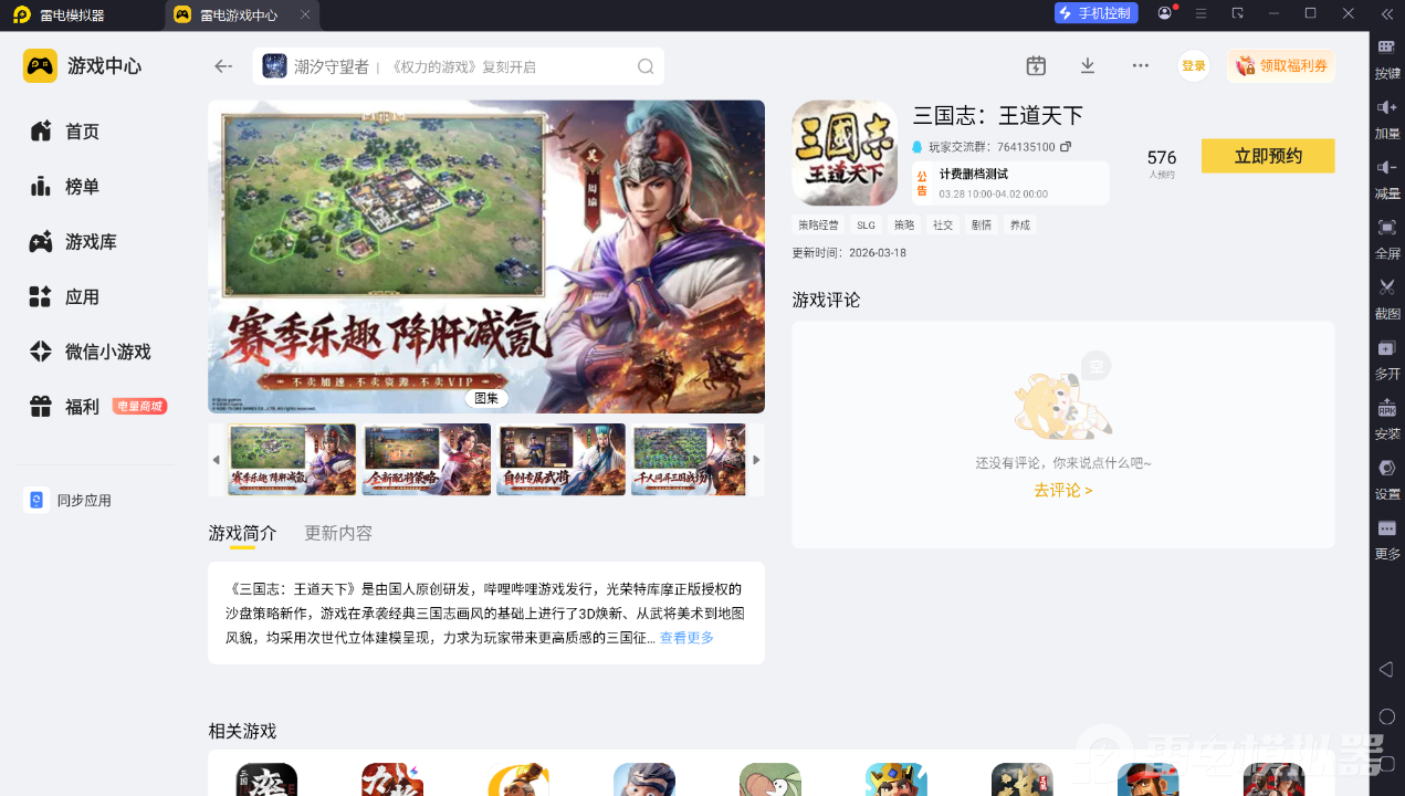 以上就是关于三国志王道天下是什么类型游戏的介绍,这款融合了经典与创新的3D沙盘策略SLG,用丰富的玩法和沉浸式的体验,为玩家打造了一个真实的汉末乱世,搭配雷电模拟器的高清大屏和便捷操作优势,能让玩家更深入地感受游戏背后的策略乐趣。