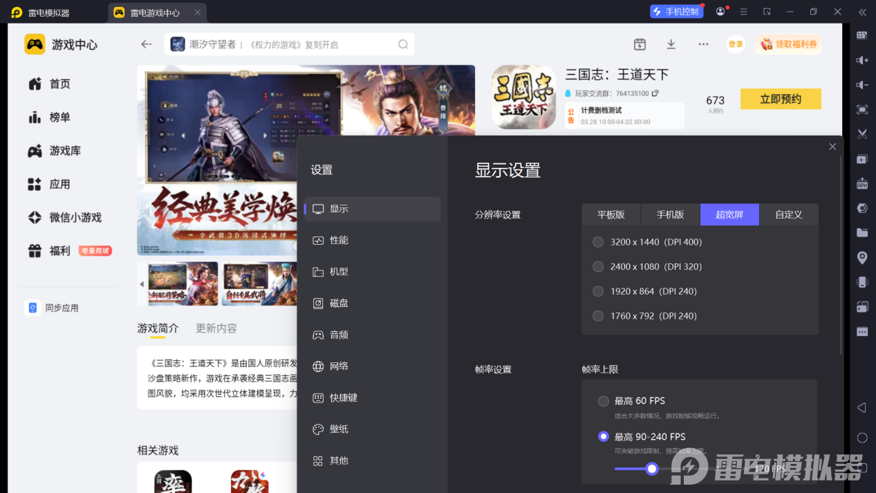 以上就是三国志王道天下下载方法的介绍,想玩这款游戏的小伙伴,快到雷电模拟器预约吧。