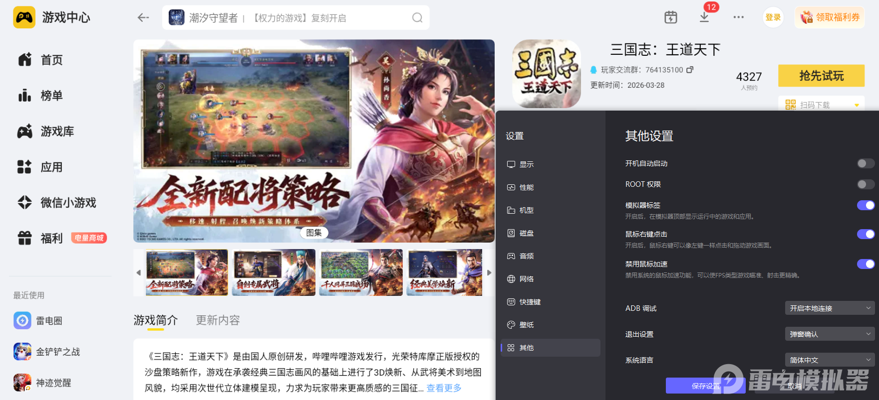 三国志王道天下张辽以其强大的突击能力与生存技能,成为游戏中不可或缺的核心武将。无论是技能细节观察还是走位操作,雷电模拟器都能带来端游级体验,助力玩家轻松驾驭张辽,在三国乱世中成就王道霸业,感受策略对战的极致乐趣。