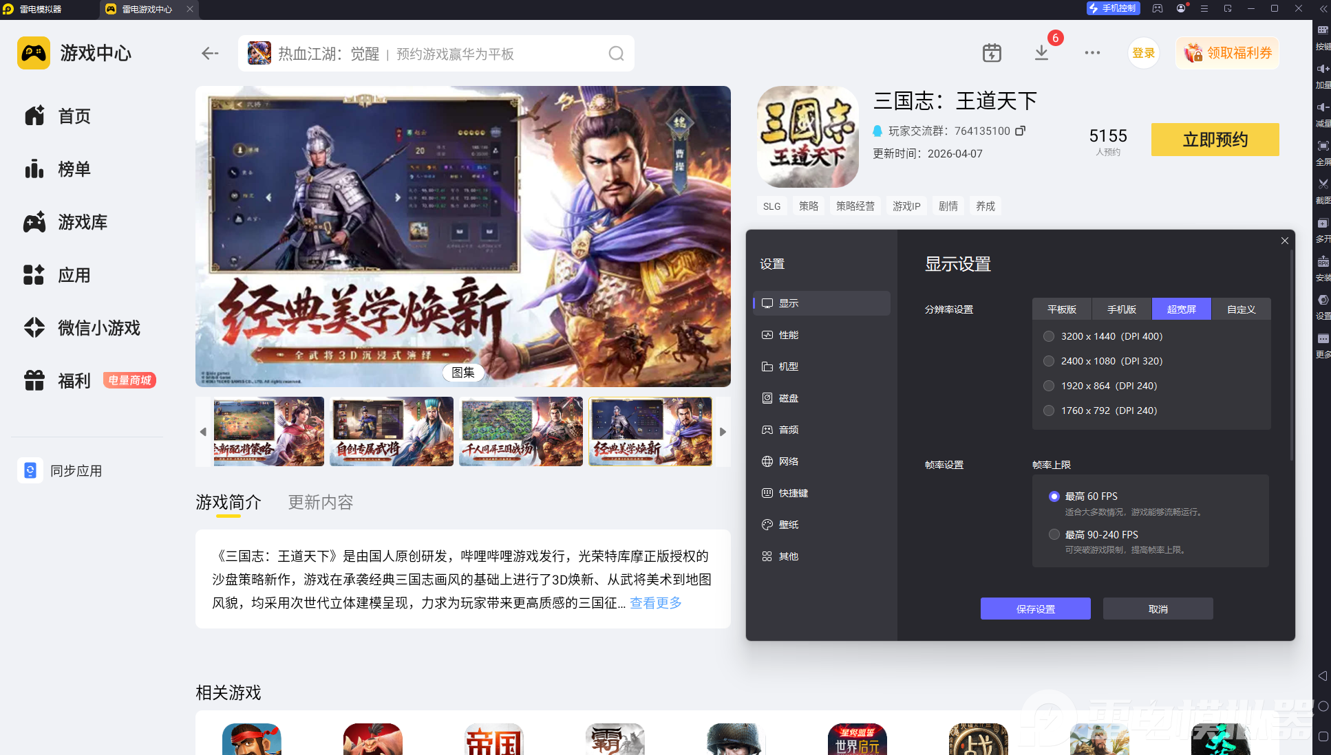 推荐各位使用雷电模拟器游玩这款游戏,165hz稳定刷新,超高帧数保证运行的流畅,还能保证不掉帧。提供超宽屏设定,能够让游戏的画面更宽泛,游戏细节一览无余,经营战斗不用再盯着小屏幕,大世界探索更轻松