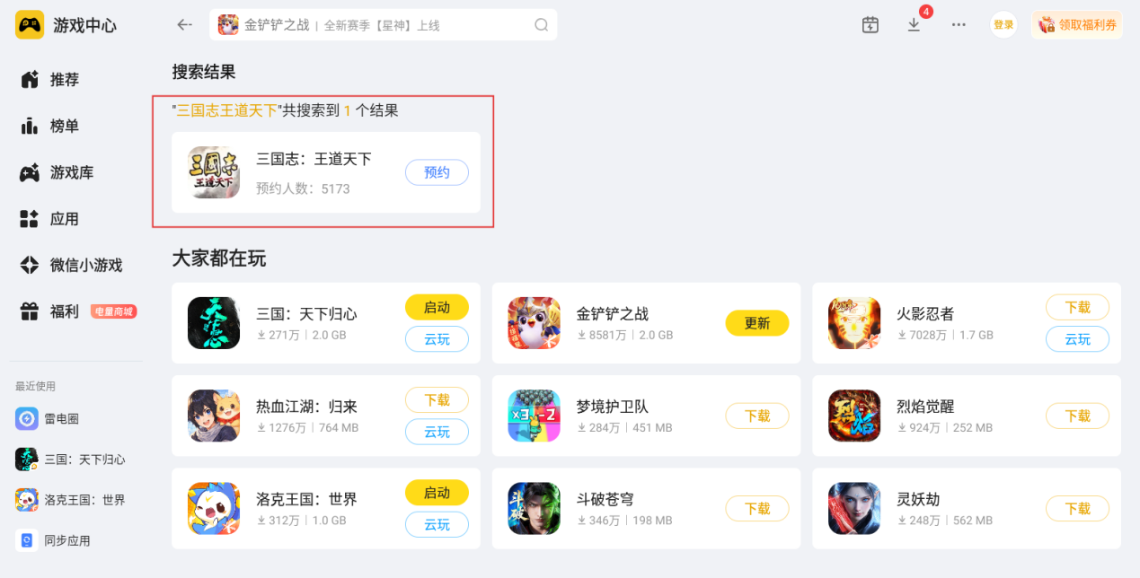 其实,大家可以尝试一下用雷电模拟器在电脑上玩三国志王道天下,能让整体游戏体验变得更加舒适。相比移动端的游玩方式,电脑端游玩的视野更开阔,长时间进行开荒操作也不易产生疲惫感,能以更放松的状态完成各项开荒操作,让开荒过程更顺心。