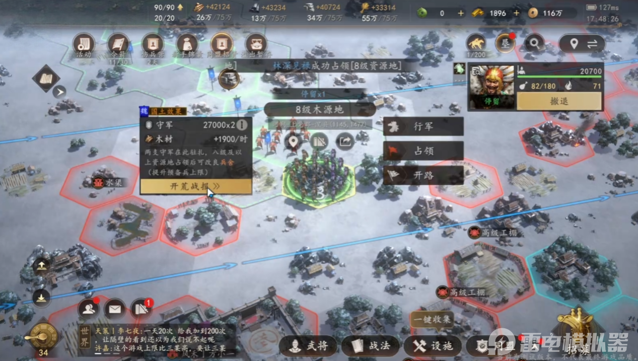 开荒时需要时刻关注资源建筑状态、武将阵容信息和野外地块详情,移动端画面展示范围有限,细节呈现不够清晰,很容易忽略关键发育信息。雷电模拟器支持4K高清画质,能完整清晰地展现游戏内的所有场景和细节,建筑等级、武将状态、野地信息都能一目了然,查看各类开荒信息更直观,有效提升开荒时的信息获取效率。