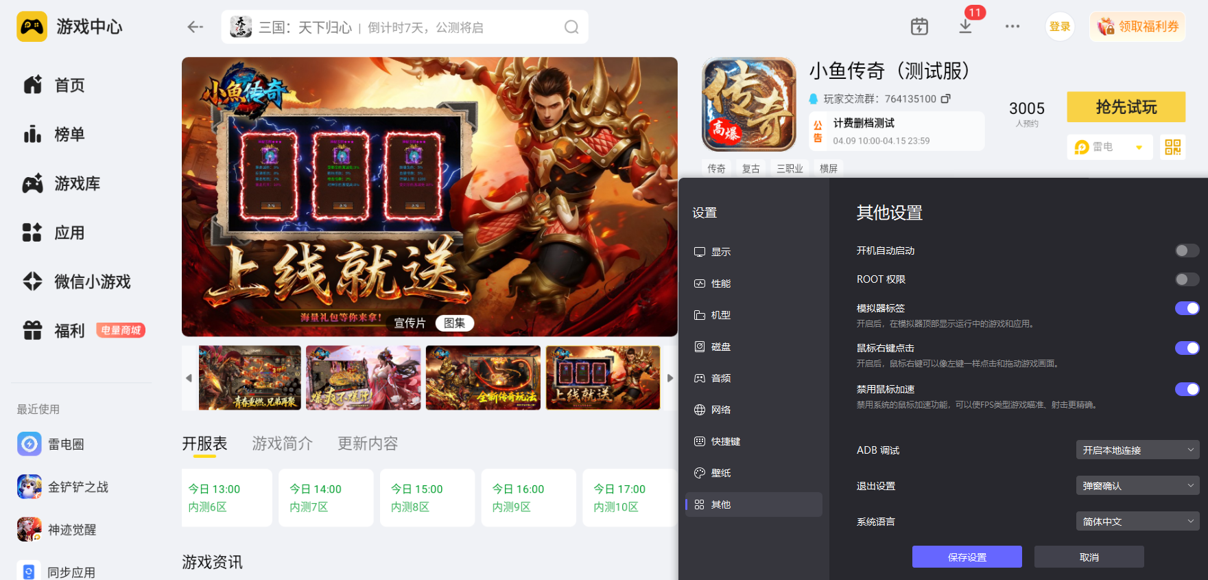 熟悉了小鱼传奇的游戏玩法后,想要在电脑上获得稳定流畅的体验,雷电模拟器是适配这款游戏的优选方案。大家要在官网先下载雷电模拟器,启动模拟器后,在内置游戏中心搜索小鱼传奇,就能一键完成安装,快速就能在电脑上开启游戏冒险。