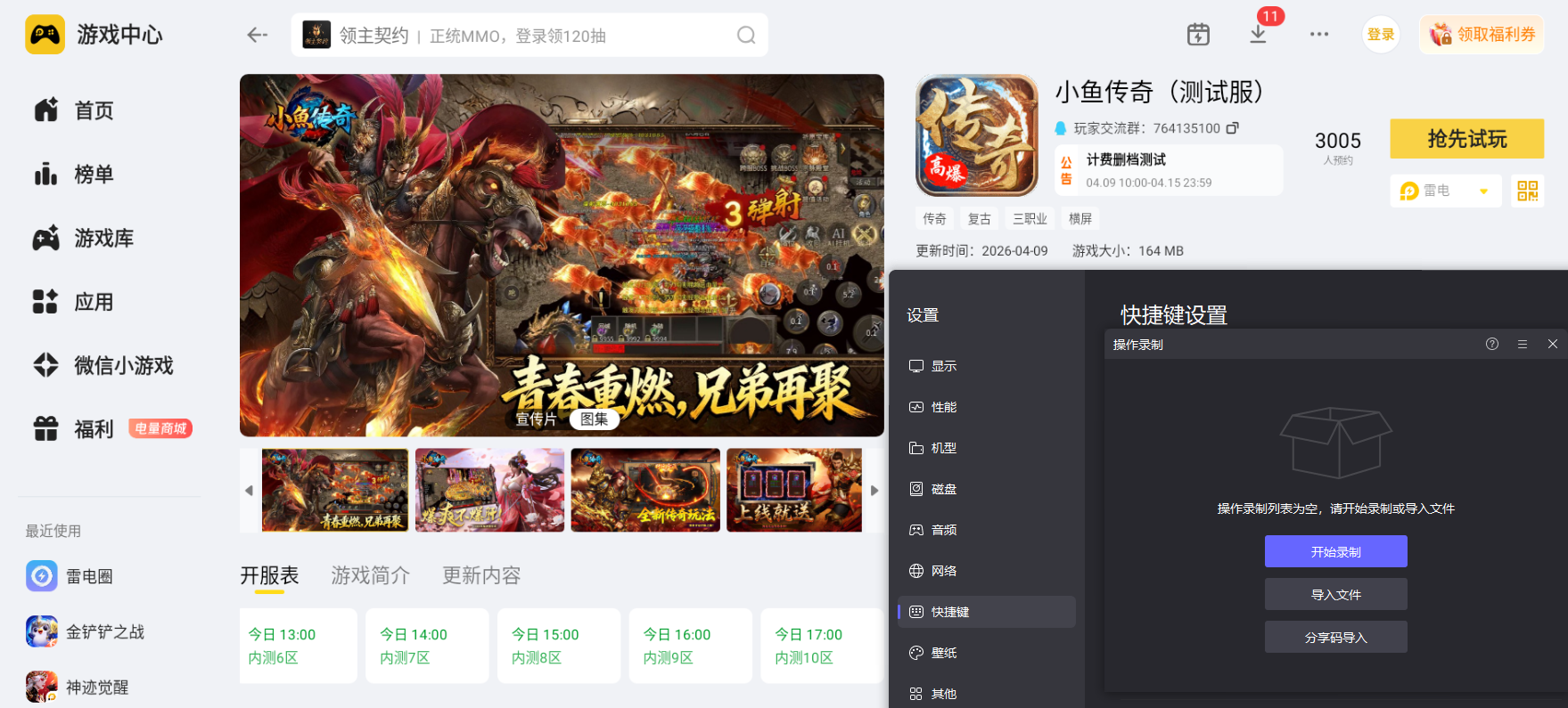 小鱼传奇中包含大量重复性的游戏操作,比如日常副本刷取、基础资源收集、常规任务完成等,长期重复进行这类操作会让游玩过程变得枯燥,而雷电模拟器的操作录制功能,可提前录制好固定的游戏操作流程,开启后就能自动完成对应的重复操作,省去手动反复操作的繁琐,让游玩过程更轻松。