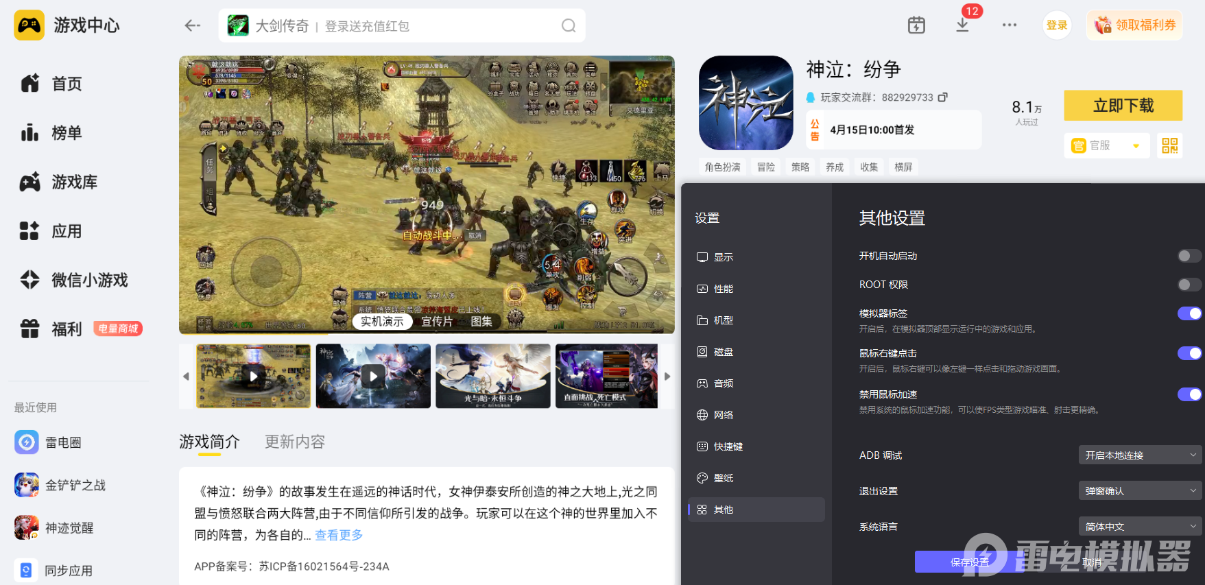 综合游玩适配度、画面呈现效果和操控体验多个方面来看,神泣纷争电脑版的整体体验远优于手机设备。要长期体验阵营对抗和副本养成玩法,选择雷电模拟器就能全程舒心畅玩,轻松玩转神泣纷争各类核心冒险内容。