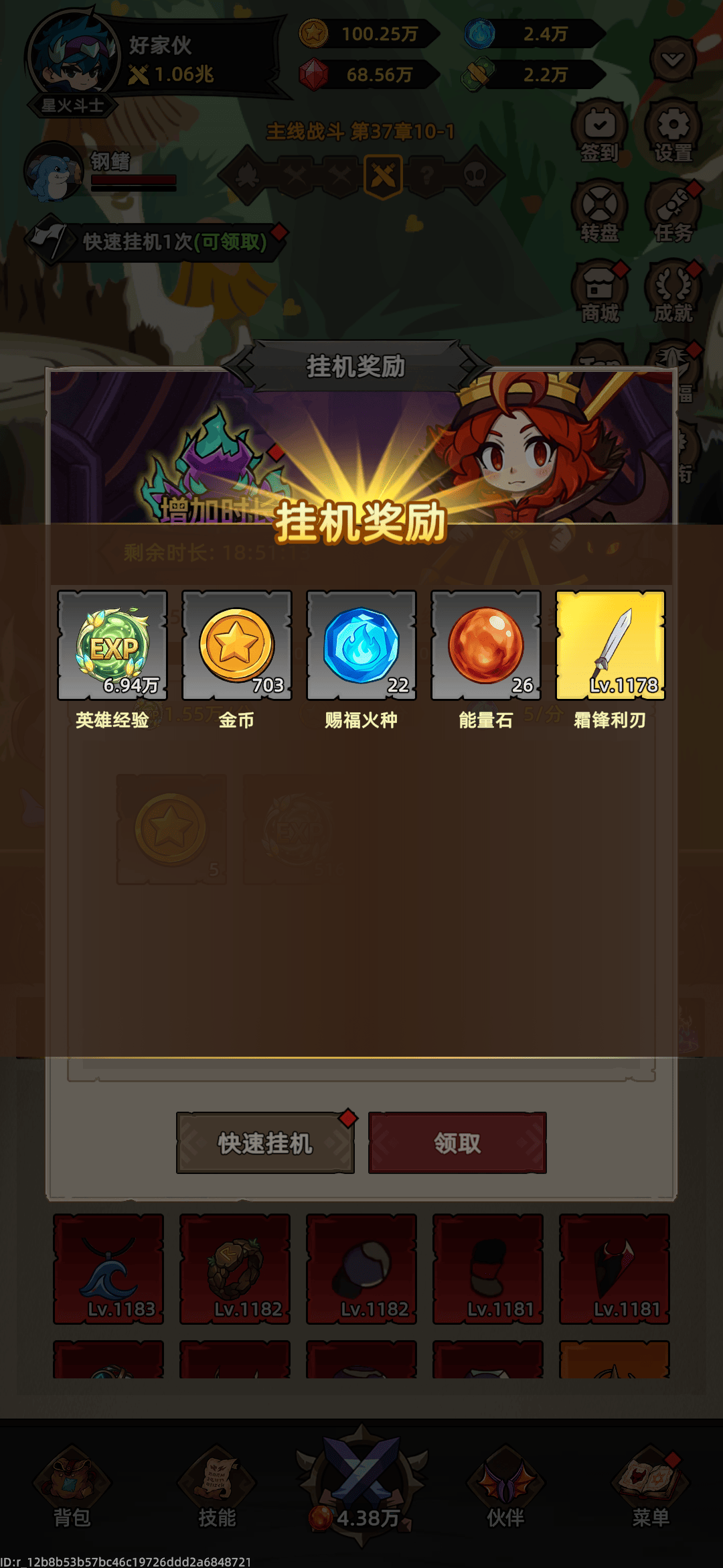 挂机收益:离线也能获得金币、经验、赐福火种、能量石和装备等奖励。