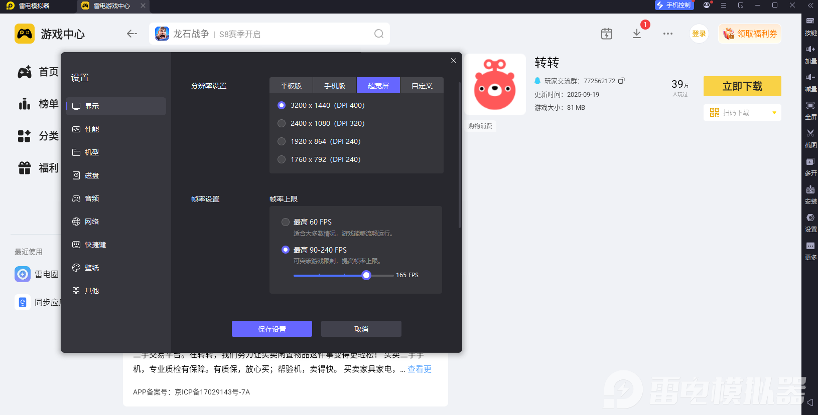 雷电模拟器支持高清大屏显示,可适配4K分辨率,用它打开转转app,商品实拍图、官方验质检报告都看得特别清晰。画面渲染速度快,没有拖影和模糊问题,色彩还原真实,查看二手物品的成色、功能细节时,不用反复放大,大屏能同时展示更多信息,帮你更准确判断商品情况。