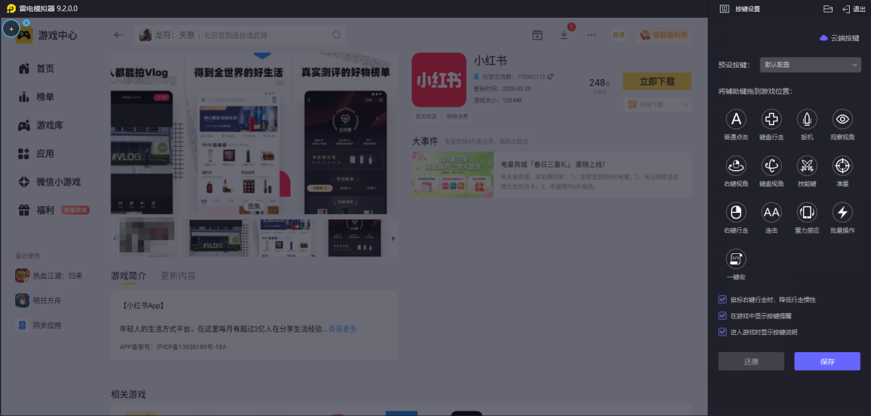 以上就是关于小红书电脑版的介绍,推荐使用雷电模拟器,帮你轻松摆脱手机小屏的束缚,不管是日常刷种草笔记,还是做内容运营,都能效率翻倍。
