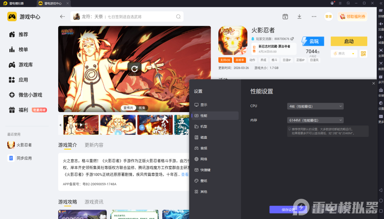 从游戏内的限定S忍招募、高招A忍自选,到雷电模拟器专属的高招券、忍者碎片福利,本次火影忍者手游疾风传周年庆的福利已全面拉满。想要轻松解锁所有奖励,流畅应对祈愿分享、决斗场等活动,避免手机端操作局限拖后腿,一款适配的工具必不可少,接下来就为大家推荐这款助力庆典薅满福利的实用帮手。