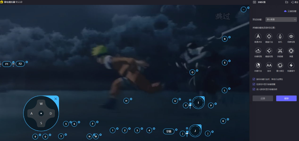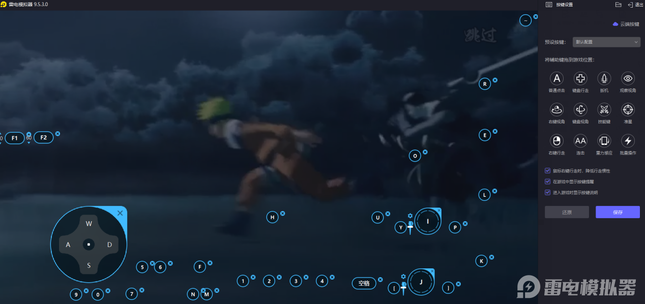 针对火影忍者的操作特点,雷电模拟器可智能匹配手机端键位,还能根据个人习惯自定义设置,将普攻、忍术、奥义精准绑定键鼠,无论是决斗场对决还是活动任务,都能实现精准走位、连贯连招,让你在周年庆活动中轻松取胜。