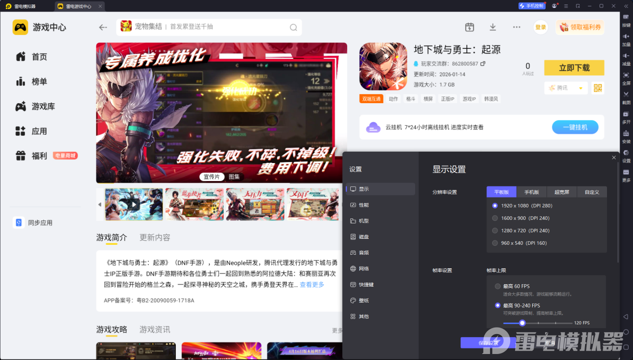 用雷电模拟器玩地下城与勇士手游能够将电脑端的性能与操作优势深度融入游戏核心玩法,尤其在应对如“70级征讨史诗装备自选礼盒”这类高价值资源时,可显著提升获取效率与使用精准度。