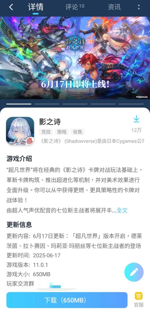 影之诗超凡世界什么时候出来?影之诗超凡世界上线时间是2025年6月17日,游戏同步登陆电脑端Steam、Epic,手机端iOS、Android平台,玩家可自由选择“超凡世界服”或“怀旧服”,用雷电圈APP玩影之诗超凡世界,可以体验到多开同步,云端自动挂机等实用功能,体验完爆普通手机端,快去试试吧!