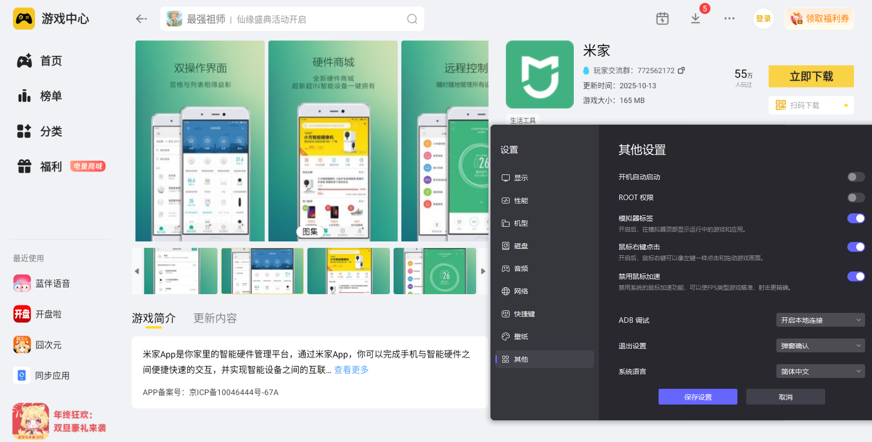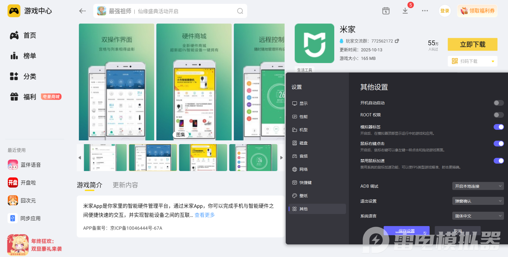 米家app的智能管理功能搭配雷电模拟器,能让使用体验更上一层楼。如果你想摆脱手机操作的局限,让智能设备管理更灵活,不妨用雷电模拟器来试试米家模拟器,相信会让你的智能生活更加省心、顺畅。