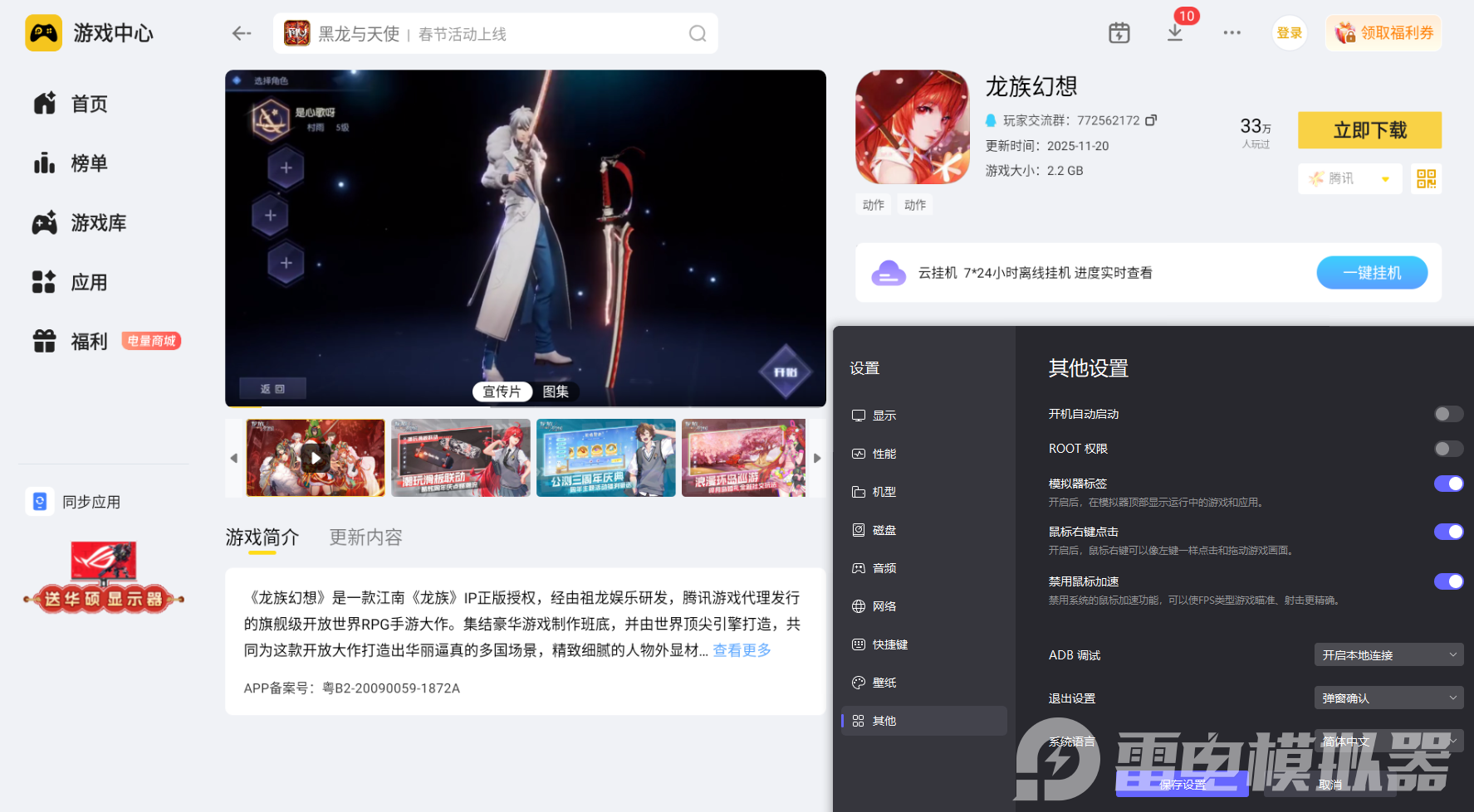 雷电模拟器云游戏:龙族幻想优选游玩渠道