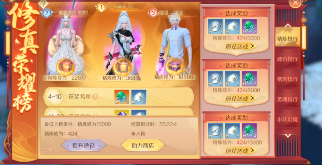 修真荣耀榜,邀你共战完美盛典!新服活动期间,修真者们可以根据精炼、魂石、镌刻、英魂等修为养成以及副本挑战获得排行名次,达到对应的档次,即可获得海量银币以及游戏提升道具!