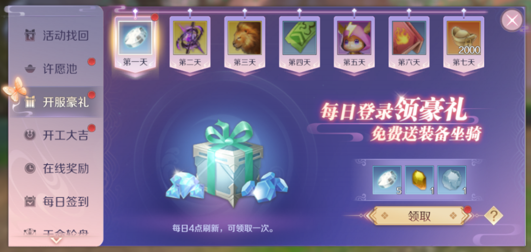 每日进入完美大陆,即可领取开服豪礼。限时稀有坐骑、兽卡、天书、飞行器、大量元宝都在等着你~