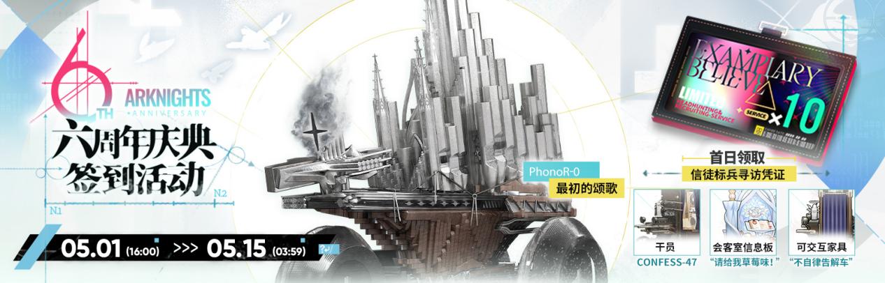 这个累积签到对于玩家而言是不容错过的,因为在5月1日16:00 - 5月15日03:59期间,只要能顺利累积达到10日,就能获得信徒标兵寻访凭证、时装、干员、家具等奖励,还是非常丰厚的。