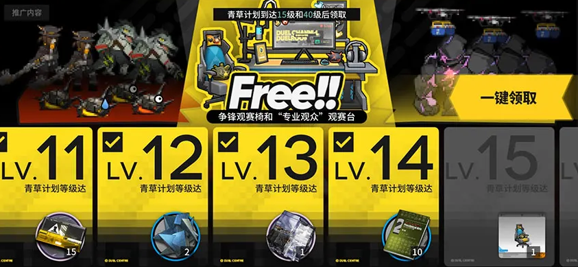 在玩法方面,大家可通过挑战关卡以及完成每日活跃任务来获取争锋大礼花,这个到时候可用来提升青草计划等级,随着不断提升更是能解锁家具、头像、模组材料以及高级养成素材和作战记录、龙门币等奖励哦。