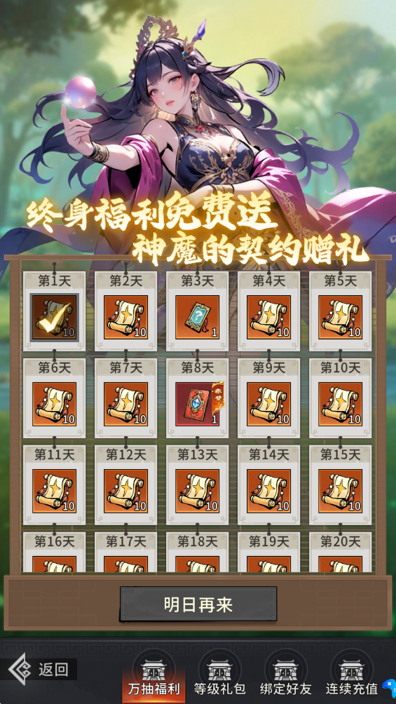 终身免费万次招募持续赠送,更可领取“神魔的契约”等长期福利,陪伴您的征战全程。